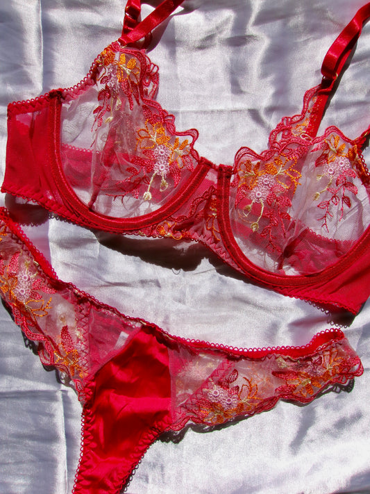 Lingerie fleurie en dentelle 3 pièces - Beige Florals